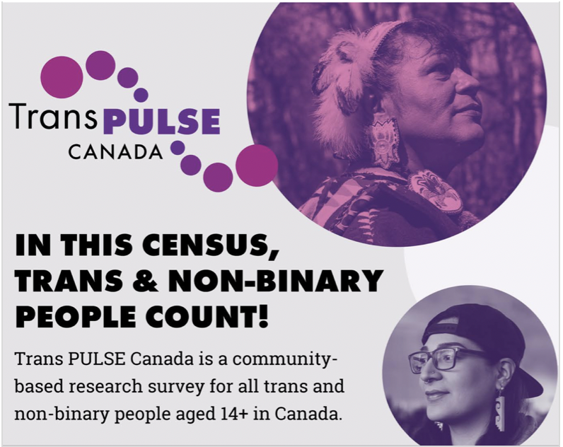 Trans PULSE Canada is a community-based survey of the health and well-being of trans and non-binary people in Canada, funded by the Canadian Institutes of Health Research. We collected data from 2,873 trans and non-binary people aged 14+ in Fall 2019. In Fall 2020, we conducted a follow-up study to understand the impact of the COVID-19 pandemic on our participants.